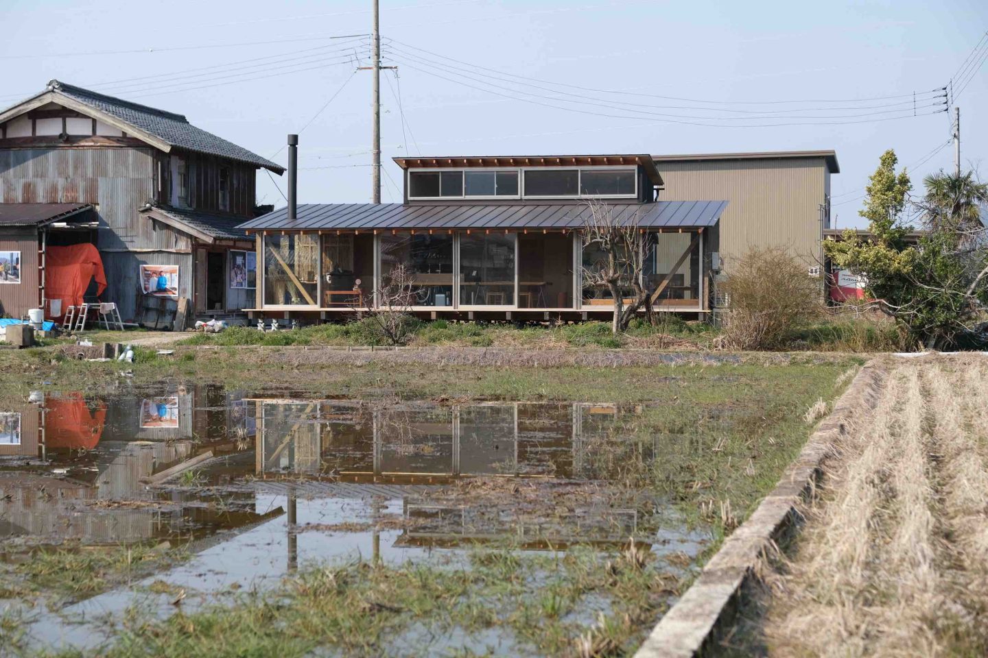 施主はこの集落で100年以上守られてきた田んぼ農家を受け継ぐご夫婦で、この集落で生まれ育った旦那さんと農家のお嫁にきた奥さん。奥さんがこの地域に馴染むまで、安心してゆっくりと考えることができる「迷える居場所」を作りたいという二人の想いからこのプロジェクトは始まりました。
